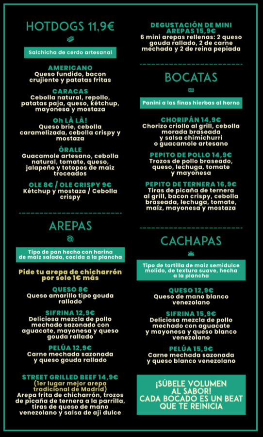 Street Lounge & Foodtruck los mejores Hot Dogs, Burgers, Bocatas, Arepas, Cachapas y Empanadas de Madrid en Paracuellos de Jarama.